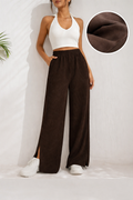 Embrace the cold season with our stylish and comfortable wide-leg pants, crafted from high-quality corduroy fabric. Designed to provide warmth while adding a touch of elegance to your winter wardrobe, these pants offer a relaxed fit with a flattering wide-leg silhouette. The soft corduroy texture is perfect for chilly days, and the side slit detail adds a modern twist, making these pants a versatile choice for casual or semi-formal outings.