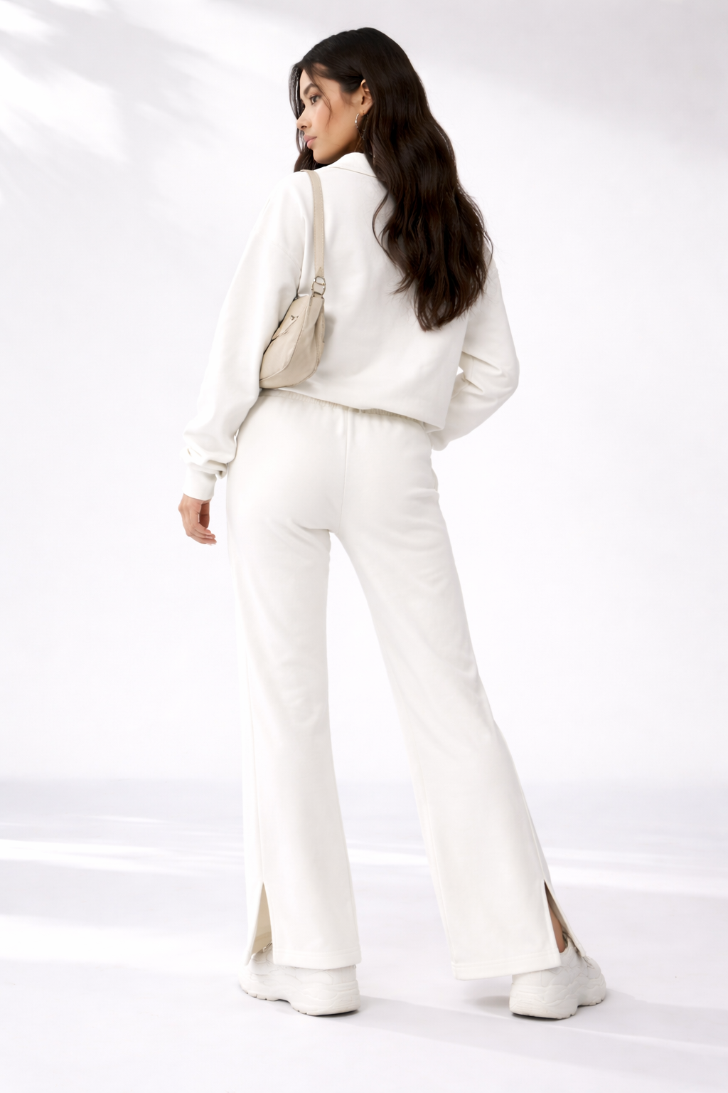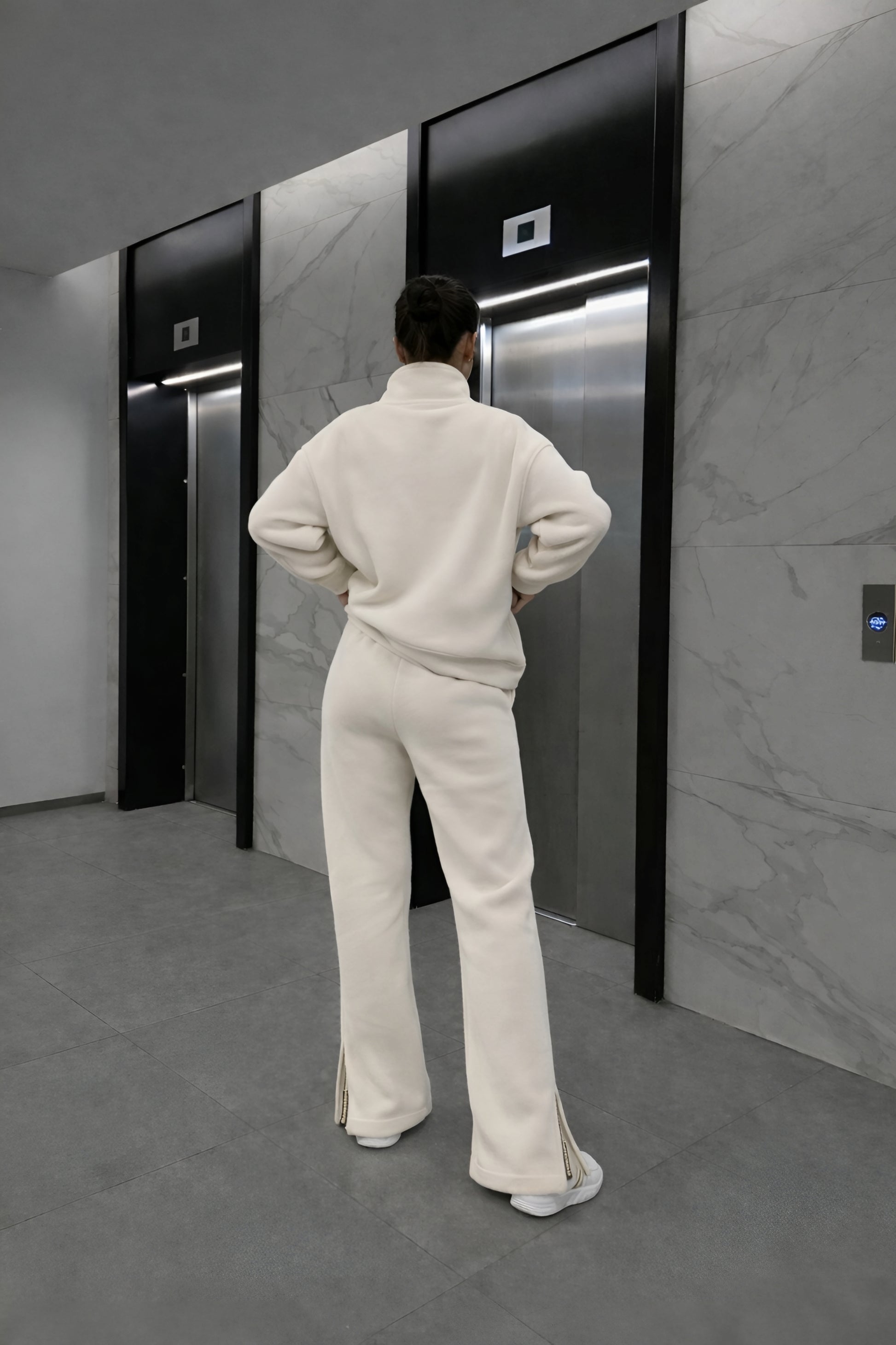 Designed with a relaxed half-zip top featuring a statement ring zipper and easy-fall straight pants, this set is all about effortless comfort. Wear it as is for cozy days or layer it with a jacket or long coat for a clean, elevated look.