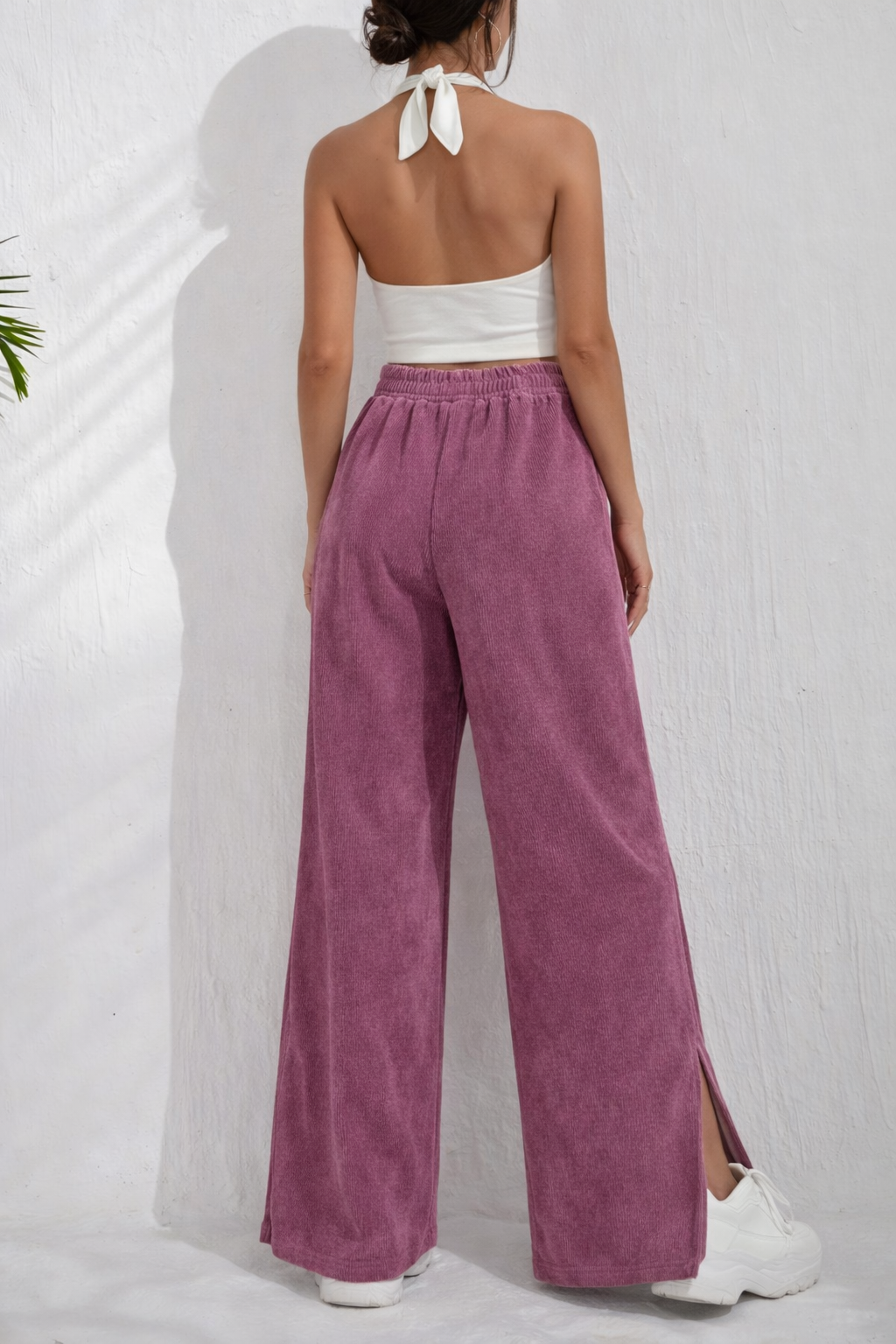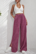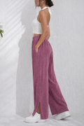 Embrace the cold season with our stylish and comfortable wide-leg pants, crafted from high-quality corduroy fabric. Designed to provide warmth while adding a touch of elegance to your winter wardrobe, these pants offer a relaxed fit with a flattering wide-leg silhouette. The soft corduroy texture is perfect for chilly days, and the side slit detail adds a modern twist, making these pants a versatile choice for casual or semi-formal outings.