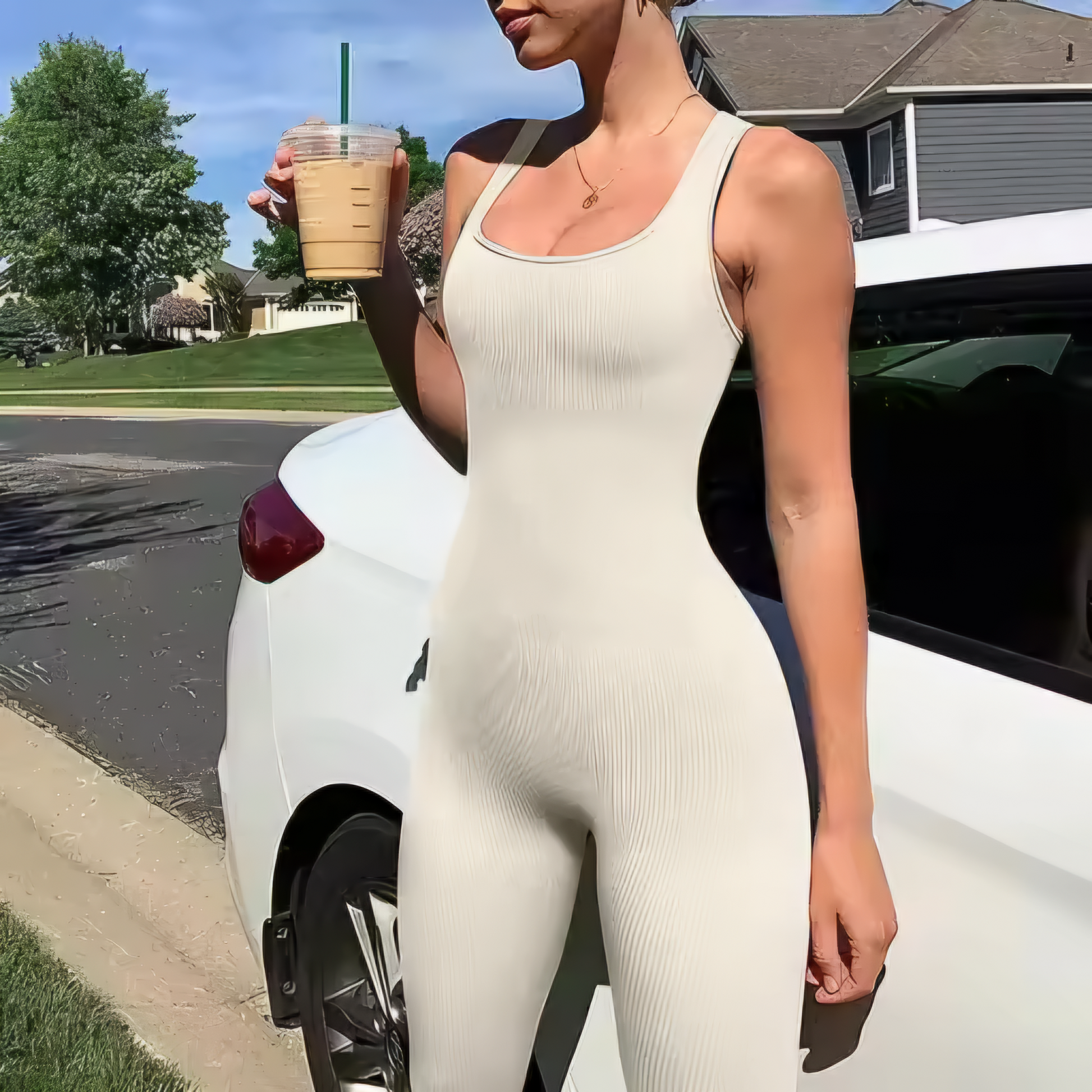 Move freely, feel unstoppable! This seamless athleisure jumpsuit is designed for ultimate comfort with a sleek, body-hugging fit and ribbed texture that flatters every curve. Featuring removable pads for customizable support, it's perfect for workouts, errands, or just lounging in style. Pair with sneakers and a cropped hoodie for the ultimate sporty-chic vibe!
